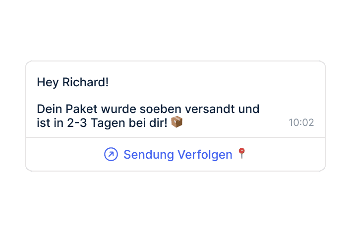Fulfillment-Events aus Shopify lösen automatisch eine WhatsApp-Nachricht mit Tracking-Link aus. So wissen deine Kunden sofort wo ihr Paket ist.
